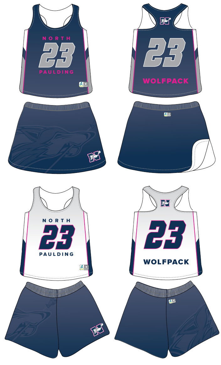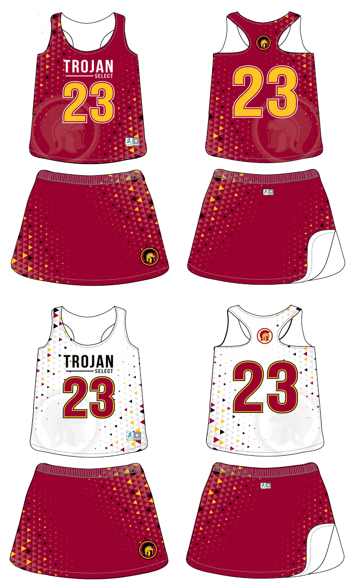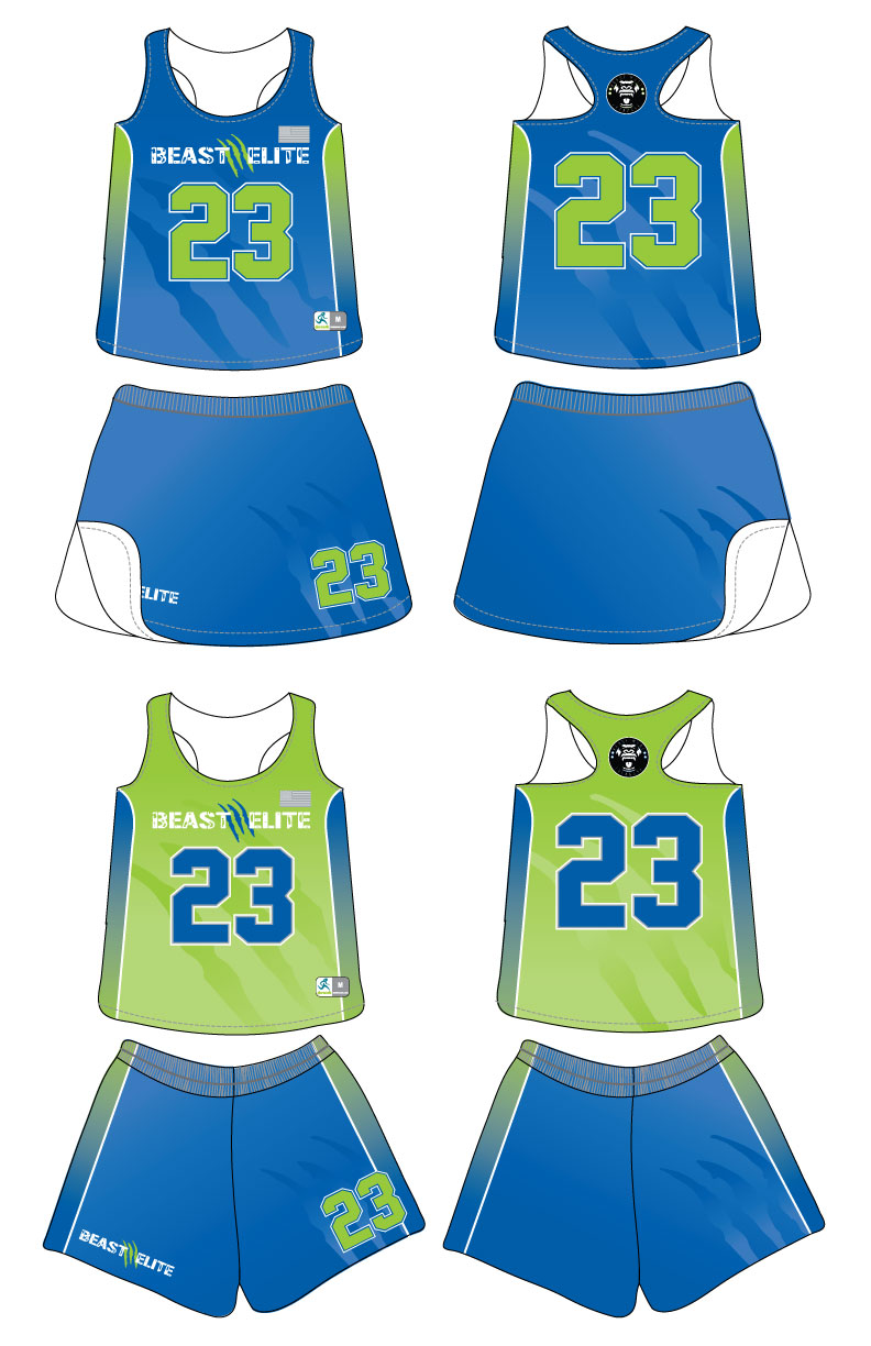 Sportabella Sublimated 1 Ply Women’s Reversible Uniform Jersey, with a matching skirt or shorts.